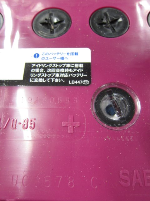 数字の見方 今回は、国産車用バッテリーを例に説明します。 この数字とアルファベットの組み合わせがバッテリーのサイズや性能などを表すものです。 最初の数字はバッテリーの「性能ランク」を表し、数字が大きいほど始動性能や容量など総合性能がバッテリー内で6個のセルに分かれているのですが、 このインジケータはその中の一セルの充電状態を表したもので、 全体の状態をしっかりと把握するにはバッテリテスターでの点検が必要だそうです。 s スズキ, ソリオ, バッテリー, 充電良好, 充電不足, カオス, caos こんなときはバッテリーを充電すると症状が改善されます。 バッテリーインジケーター(点検窓)を見て「要充電」のサインが出ているとき メンテナンスフリー(MF)バッテリーはバッテリー液の補水が不要で使いやすいのですが、充電までは面倒を見てくれません。 ほとんどのMFバッテリーには点検窓が付いているので、要充電のサインが出ていたら充電してあげましょう。 上